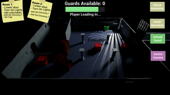 - Set up the level as much as you can before the player loads in. A guard within the bounds of a task (red cube) will either have to wait or jam the space bar.